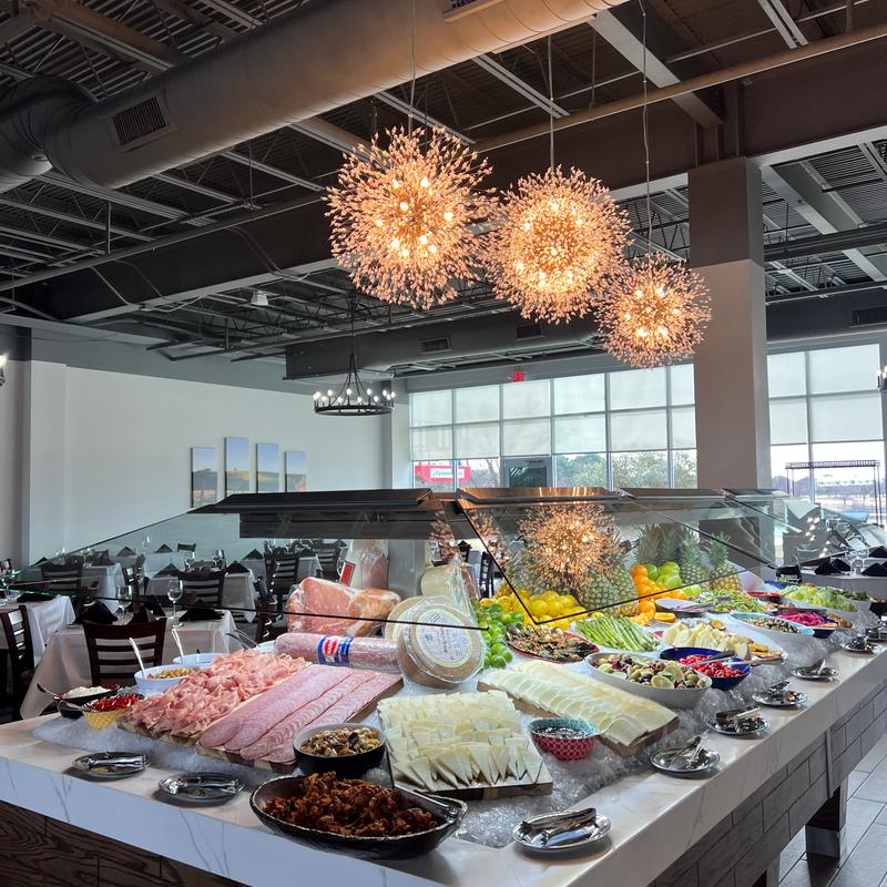 Enjoy unlimited visits to the market table. The menu includes fresh salads, vegetables, fruits, imported cheeses, specialty cured meats, and smoked salmon.* Hot dishes include rice, black beans, mashed potato, and more.